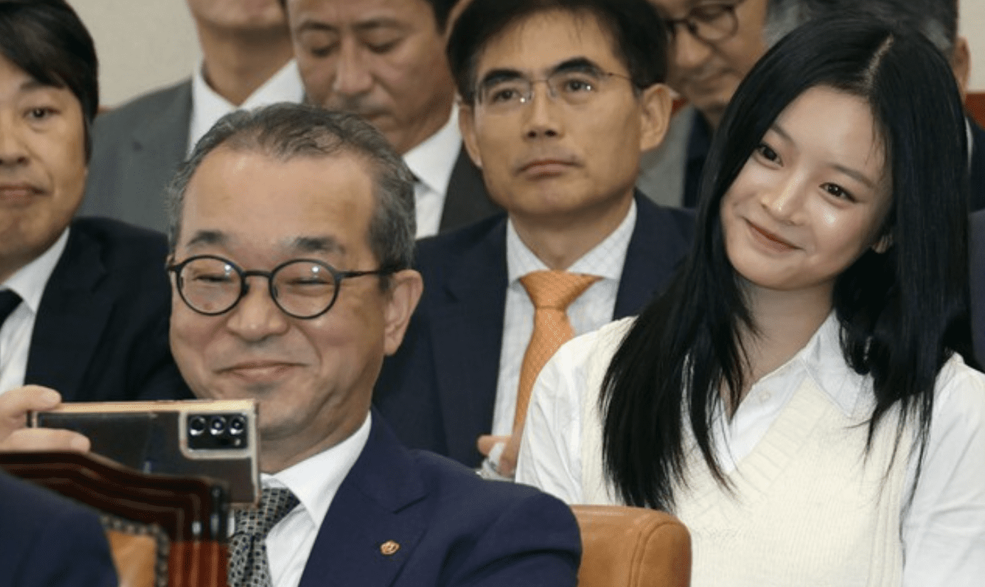 국감에 온 하니와 ‘인증셀카’ 찍는 전 한화 부회장