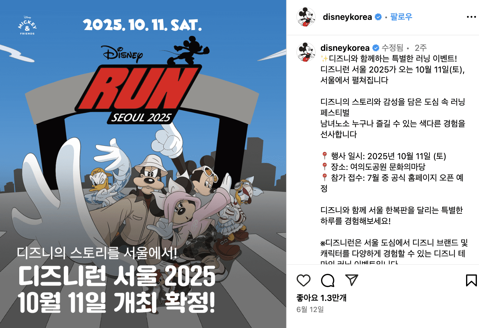 디즈니런 서울 공식 확정…티케팅은 언제?