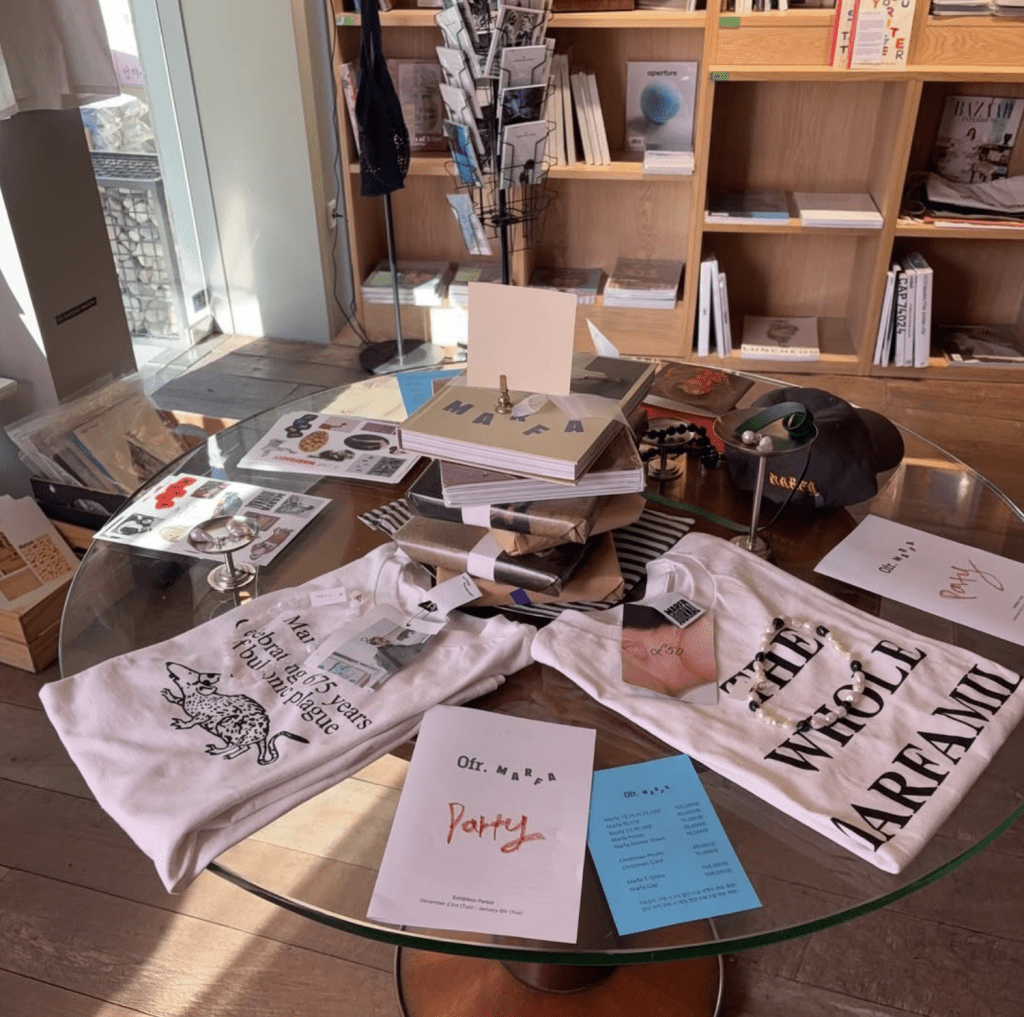 이번 전시는 Marfa의 홀리데이 에디션 〈MARFA Party〉 발간을 기념해 마련된 런칭 이벤트로, 매거진이 소개해온 콘텐츠와 분위기를 오프라인에서 소개하는 형태로 구성됐다. 전시장에서는 현재는 구하기 어려운 Marfa의 과월호를 비롯해 포스터, 스티커, 굿즈 등 다양한 아카이브 아이템을 구매할 수 있다.