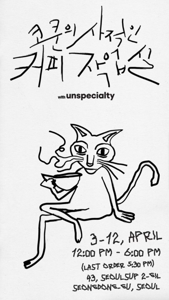 4월 3일부터 12일까지 무신사 스페이스 서울숲에서 진행되는 ‘코쿤의 사적인 커피 작업실’은 코드 쿤스트와 스페셜티 커피 플랫폼 언스페셜티가 함께 기획한 팝업이다. 마포의 로스터리 카페 말릭커피 원두를 바탕으로 코쿤이 직접 블렌딩에 참여한 5종의 원두를 중심으로 구성되며, 각각의 향과 맛을 직접 비교해볼 수 있다.